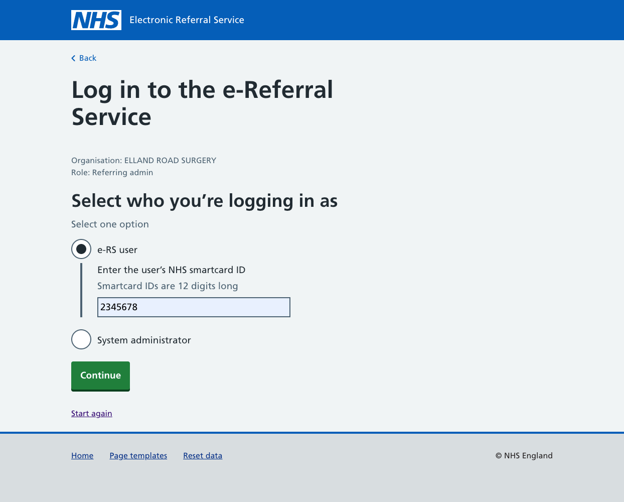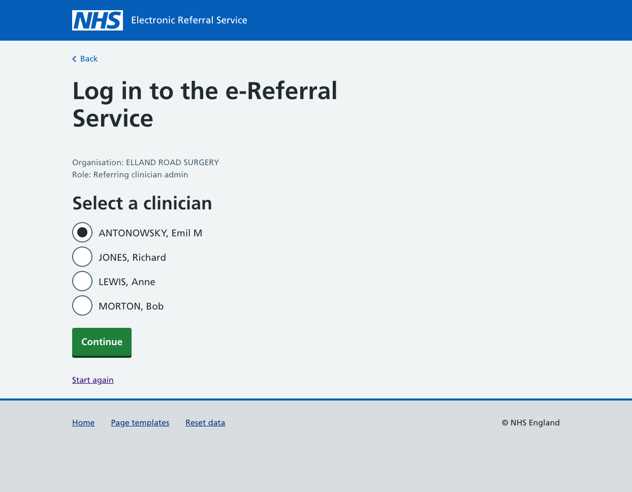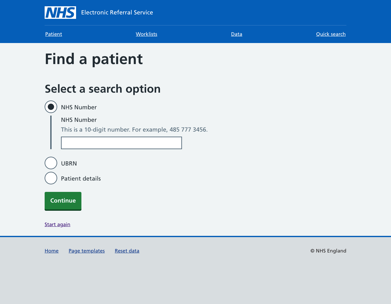 Finding a patient in e-RS using the NHS Prototyping kit.